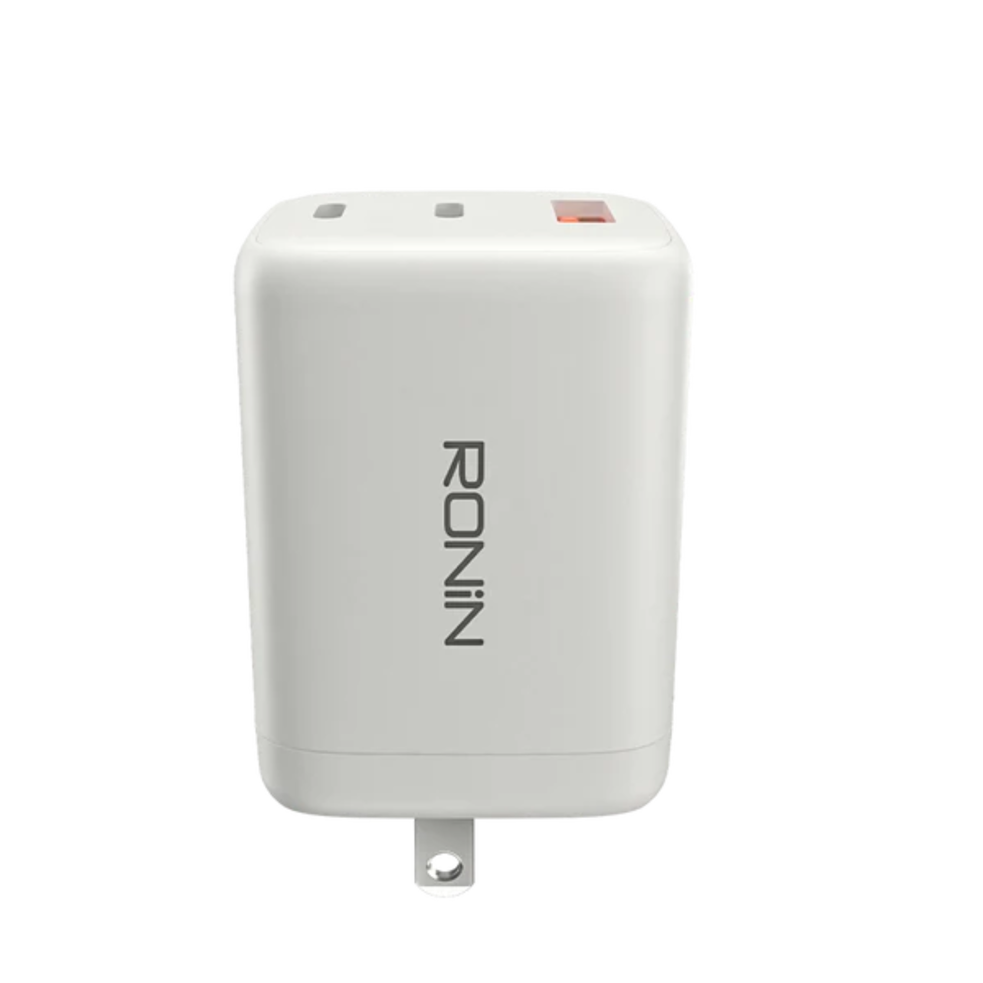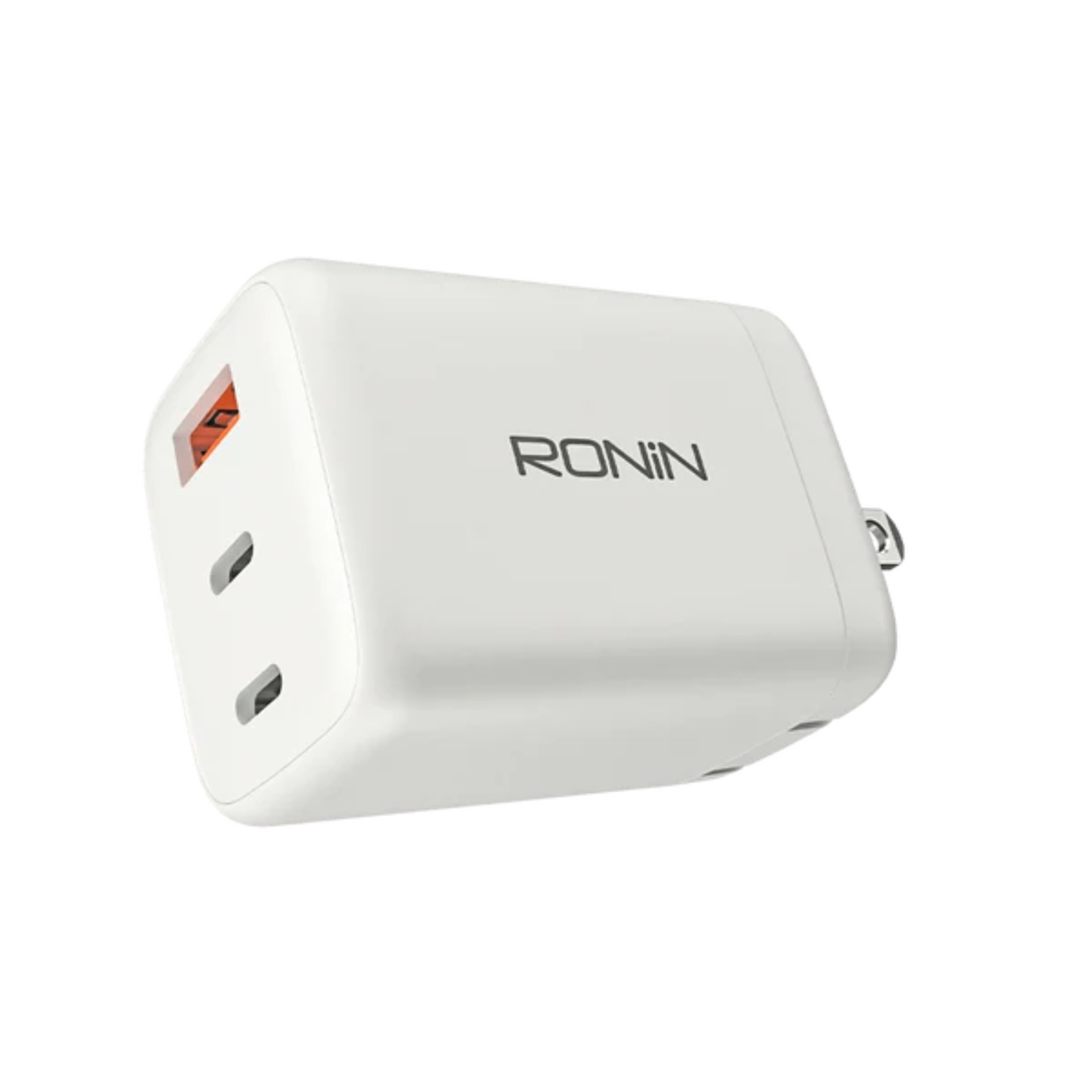 The RONiN Multivolt is a powerful 65 W dual-port wall charger engineered for fast and versatile charging of smartphones, tablets, earbuds, and USB devices. Equipped with advanced PD, QC, and AFC charging technologies, it delivers up to 65 W on the primary Type-C port and up to 27 W on the secondary port and USB-A, ensuring rapid and efficient power delivery to multiple devices at once. Built with comprehensive safety features such as short circuit prevention, over-charge protection, surge control, and temperature regulation, this compact charger pairs reliable performance with durability and premium build quality for everyday use.